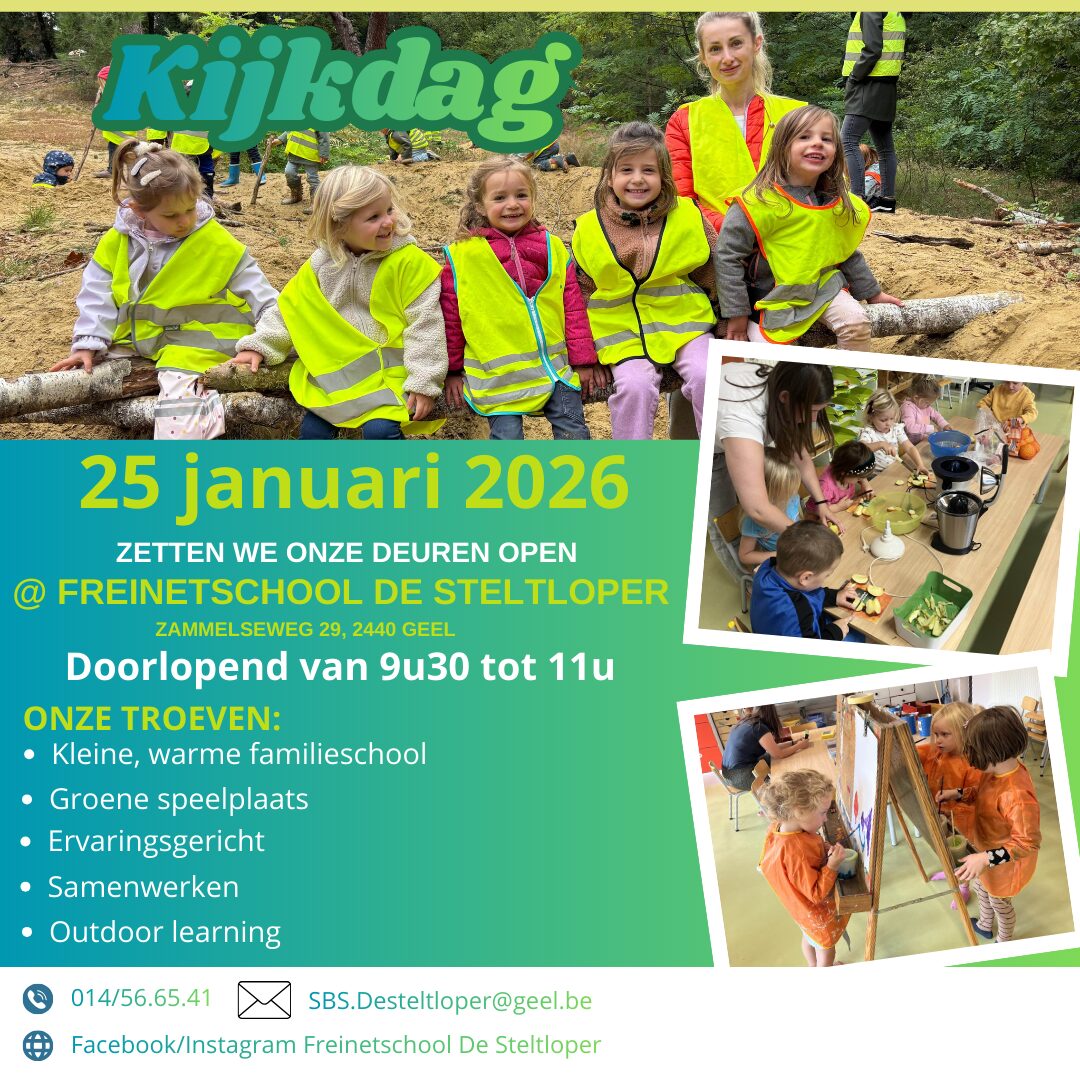Welkom iedereenVan harte welkom in onze school De Steltloper. Wij zijn een kleine school waar ruimte en tijd is voor kinderen om op een ongewoon boeiende en actieve manier te leren. Een zalig ruime en groene speelplaats, een ecologische tuin, atelier en projectwerking, vrije teksten en tekeningen, levend leren en boeiende uitstappen … Dit is maar een klein stukje van onze uitnodigende en ervaringsgerichte leer- en leefomgeving waar onze steltlopers elke dag met plezier in vertoeven. |